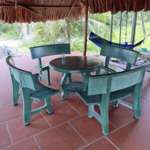 Bộ Bàn Ghế Tròn Ngoài Trời, Xanh Rêu 4 Ghế Cong